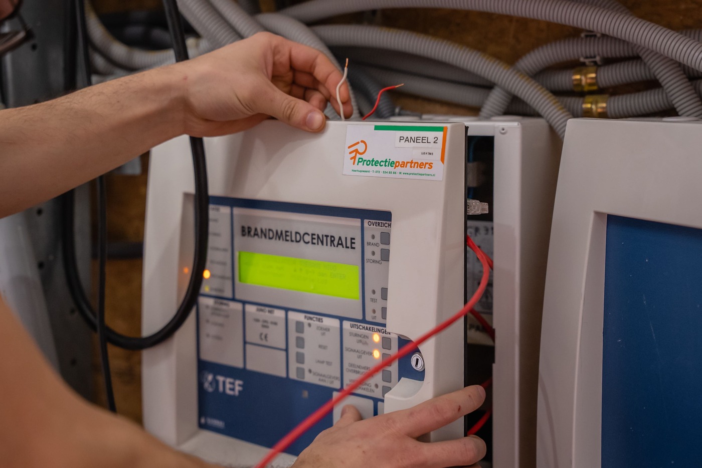 De nieuwe brandmeldcentrale is naast de bestaande installatie geplaatst, waardoor oud en nieuw systeem tijdelijk parallel konden functioneren. Lussen zijn één voor één overgenomen, aangesloten en getest. Zo bleef de branddetectie gedurende het hele traject actief.